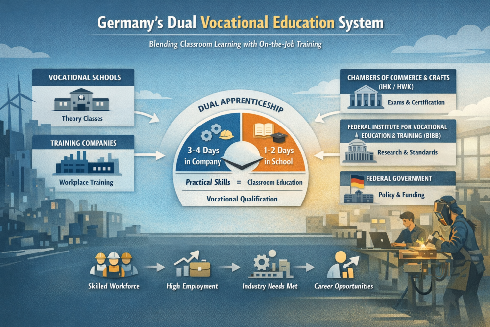 Germany’s Vocational Education System, often called the dual system, is deeply rooted in the country’s industrial culture. Its strong industry collaboration fosters pride and confidence in the system's effectiveness, making it a model for workforce development worldwide.