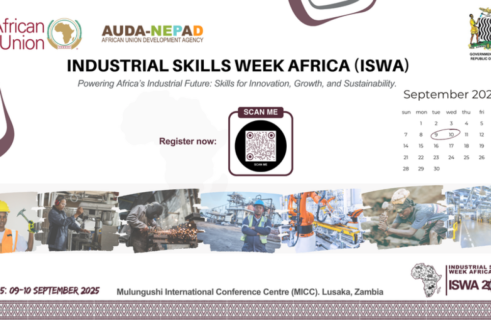 The African Union Development Agency-NEPAD (AUDA-NEPAD), in partnership with the Government of the Republic of Zambia, is convening the Industrial Skills Week Africa (ISWA) from 9-10 September 2025 at the Mulungushi International Conference Centre in Lusaka, Zambia. The event is set to serve as a continental platform to accelerate dialogue, partnerships, and action around the role of skills in powering Africa’s industrial transformation.