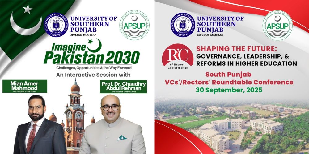 The University of Southern Punjab (USP), Multan, in collaboration with the Association of Private Sector Universities of Pakistan (APSUP), is set to host two landmark events tomorrow, September 30th, 2025, aimed at shaping Pakistan’s future trajectory in governance, education, and leadership.